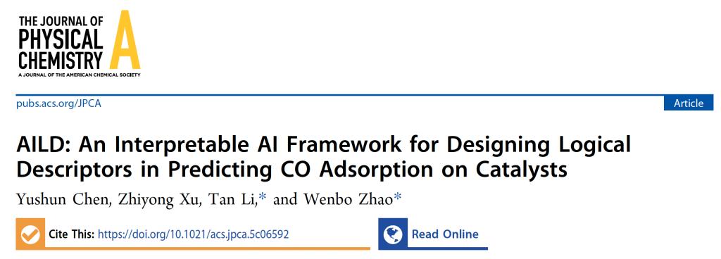 近日,昆明理工大学化学工程学院分子分离与催化团队在多相催化剂理性设计及可解释人工智能(AI)领域取得系列进展。相关研究成果以“Logical Descriptor Elucidates a Protein Folding-like Mechanism in Propylene Adsorption: Intrinsic Site Characteristics versus Adsorption Energy”和“AILD: An Interpretable AI Framework for Designing Logical Descriptors in Predicting CO Adsorption on Catalysts”为题,发表于物理化学领域权威期刊《The Journal of Physical Chemistry C》和《The Journal of Physical Chemistry A》。
