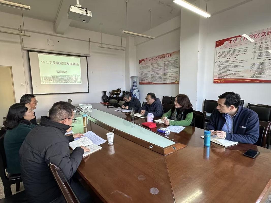2025年12月10日上午,化学工程学院与院内民主党派、无党派人士开展联谊交友座谈会。会议旨在进一步加强学院党委与民主党派、无党派人士的沟通联系,听取对学院建设发展的意见建议,凝聚智慧,汇聚力量,共同推动学院事业高质量发展。学院班子成员参会,会议由学院党委孙刚同志主持。