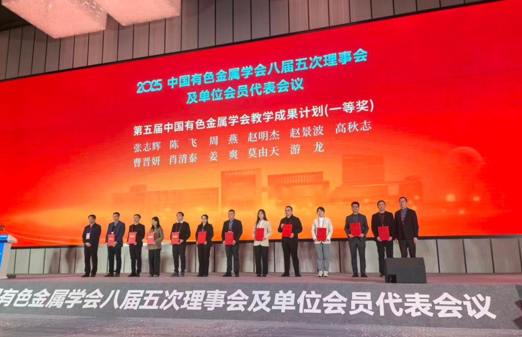 2025年12月18日,2025中国有色金属学会第八届五次理事会在江苏省常熟市隆重召开,大会表彰了2025年度我国有色金属行业教育教学的新成果,并进行了第五届NFSOC教学成果颁奖仪式。由学院院长罗永明教授牵头,陈飞教授、何德东教授、许恒杰副教授、谢德龙教授和周新涛教授共同完成的“跨界融合·数智融汇·科教融通:化工类创新人才培养探索与实践”教学成果,荣获第五届有色金属学会教学成果计划一等奖,这是我院首次获得该国家一级学会教学成果一等奖,凸显了化学工程学院近年来在人才培养创新和学科建设改革方面的显著成效。
